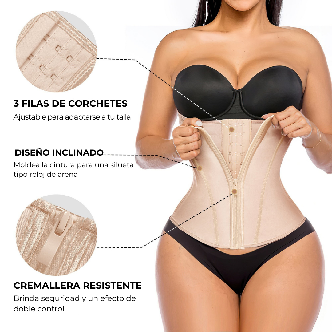 Features a front zipper combined with adjustable hook-and-eye closures, offering double waist control and an immediate shaping effect. Provides a precise and stable fit, ideal for everyday use or physical activities.